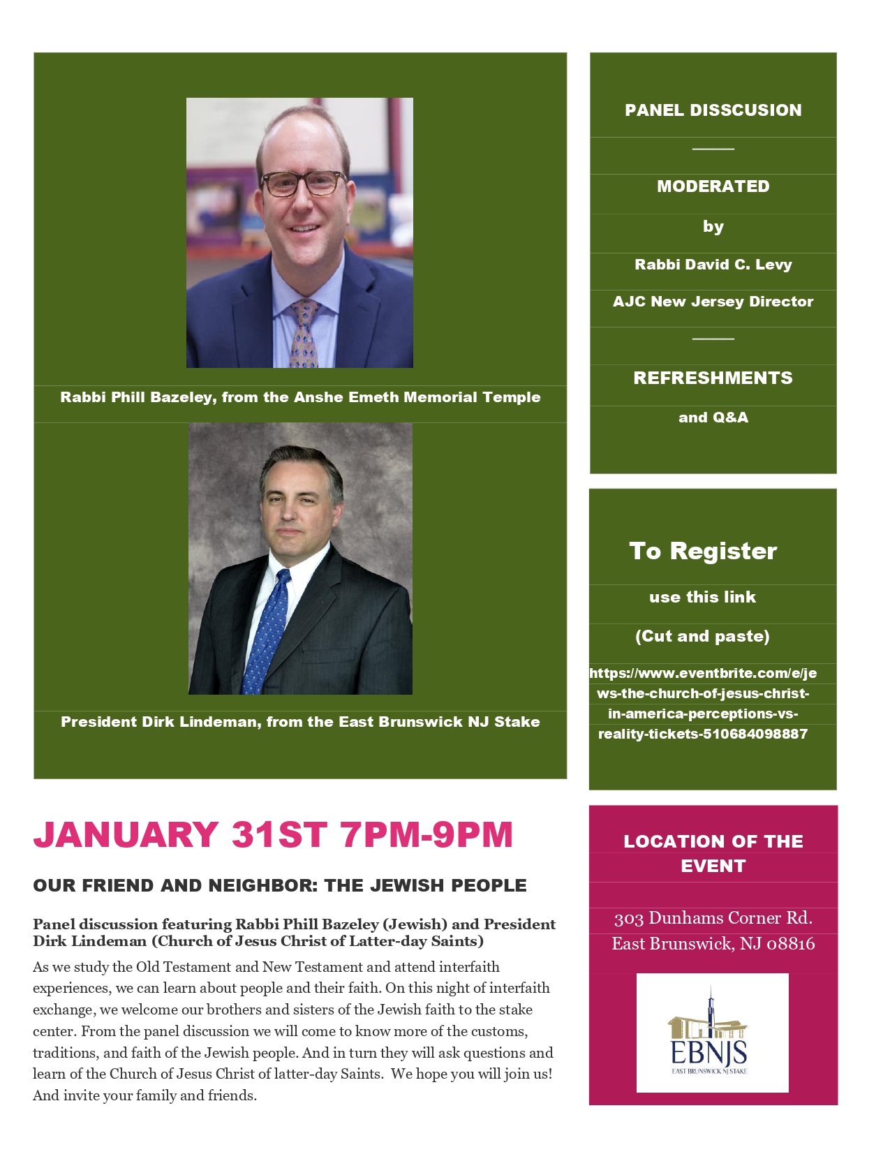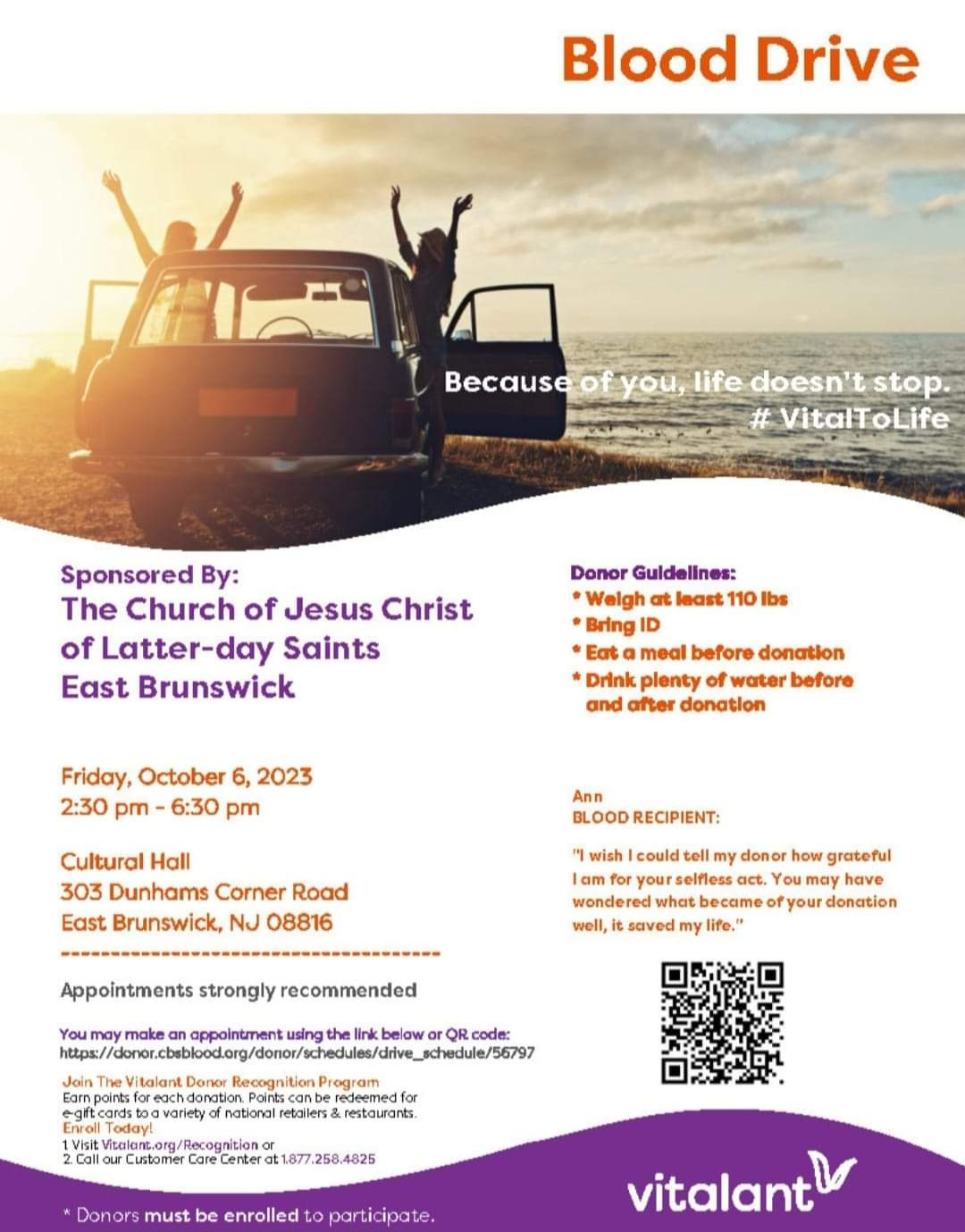 The East Brunswick Stake invites you to “Learn. Share. Celebrate Diversity!” It will be an evening of food, entertainment and dancing. It is a POTLUCK, therefore bring a favorite food from the country of your birth or a country you want to represent (the USA included). It will be on November 8, 2025, 4:00PM- 10:30PM. We are at 303 Dunhams Corner Rd. East Brunswick, NJ If you have any questions or comments, please reach out to our Stake Communication Director at wsewell@comm.churchofjesuschrist.org